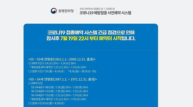 19일 질병관리청의 코로나19 예방접종 사전예약 홈페이지.