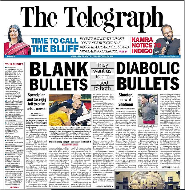 Budget 2020 Presented By Finance Minister Nirmala Sitharaman How Newspapers Covered