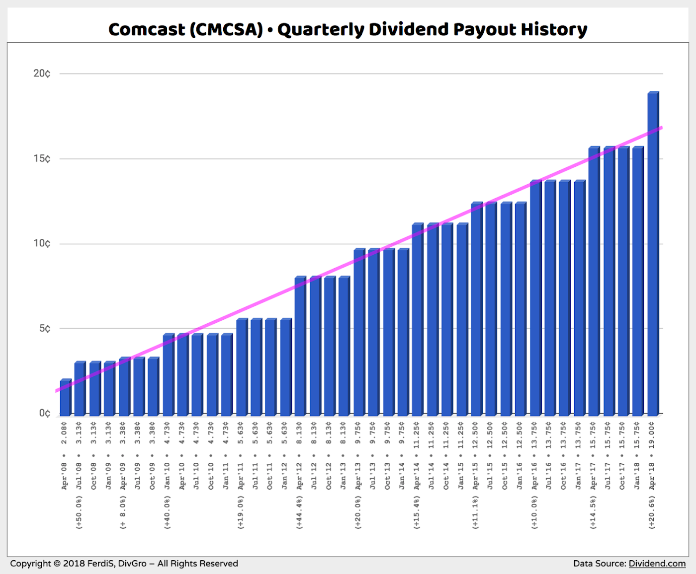 Comcast dividende. By month or year chart. That equates to a dividend yield of 18 at current price levels. 28 2021 DIVIDEND ANNOUNCEMENT.