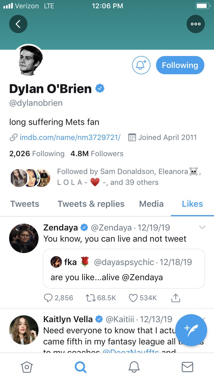 Devin On Twitter Dylan O Brien Liking This Zendaya Tweet Https T Co Jlyfx0h2fj Twitter