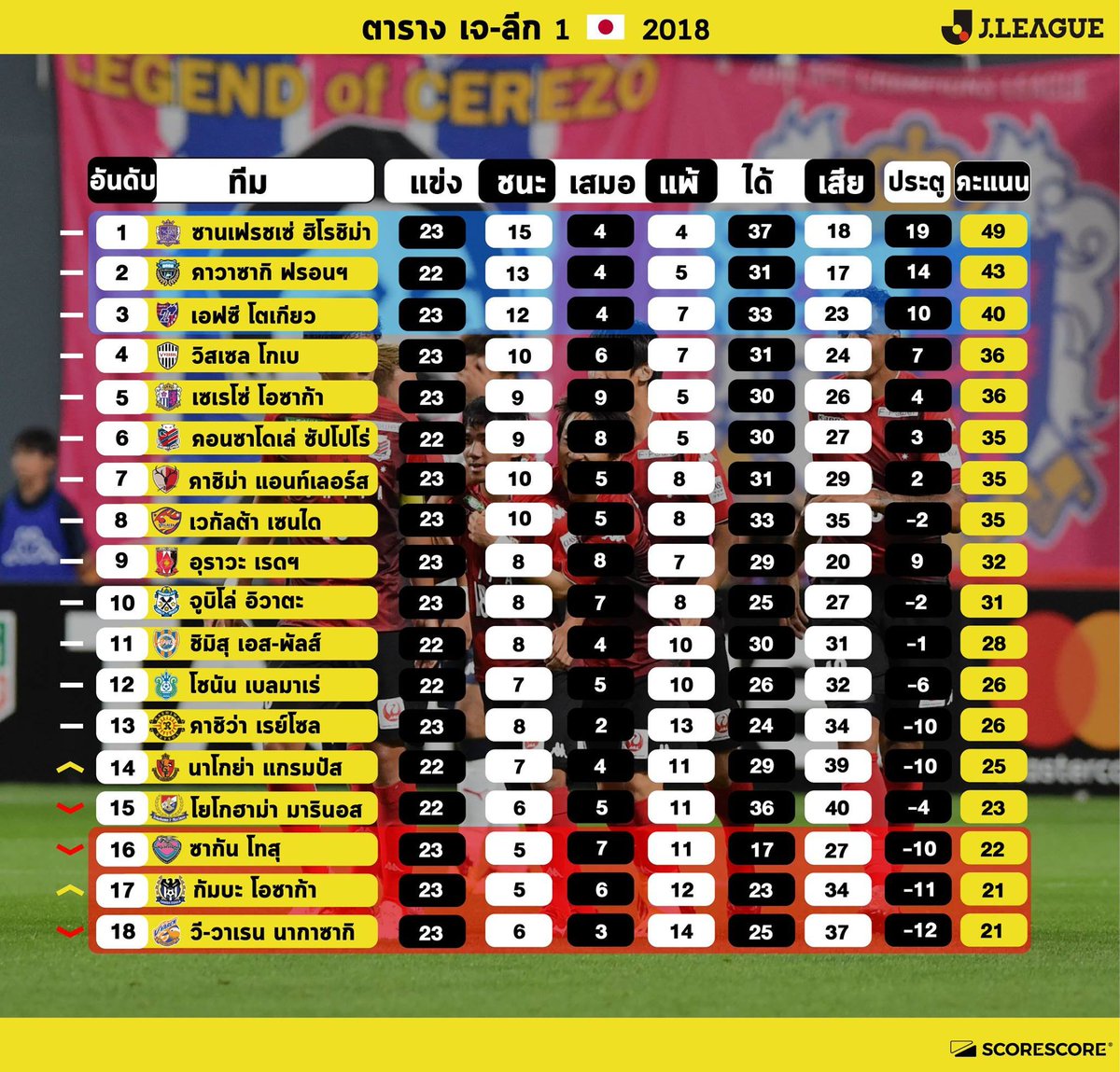 ตารางคะแนน เจลีกล่าสุด / อ นด บตารางคะแนน ฟ ตบอล เจล ก J League Thai Fan Page Facebook