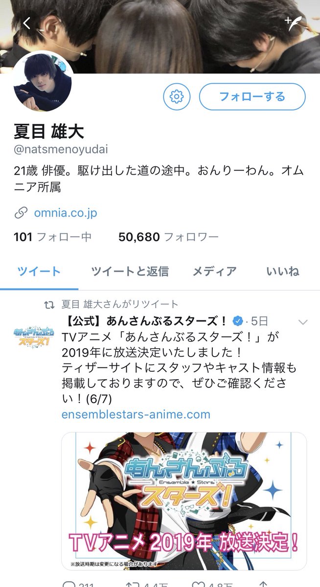 Twitter पर 閻魔帳bot 現時点で 夏目雄大 のアカウントの表記が1枚目のものから2枚目のものに変更 あんステ あんスタ 関連のリツイートが消え プロフィール や所属事務所へのリンクも削除されたことから その理由は推して知るべしといったところか